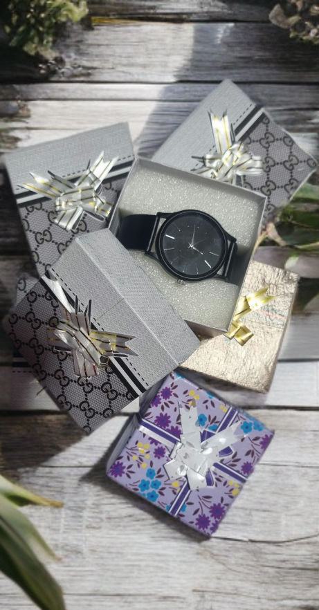Each watch comes in a designer gift box, available in various prints and textures like: